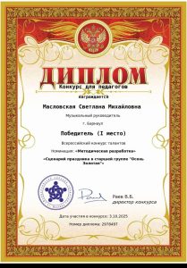 • Музыкальный руководитель – Масловская Светлана Михайловна