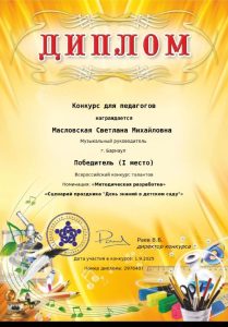 Музыкальный руководитель – Масловская Светлана Михайловна