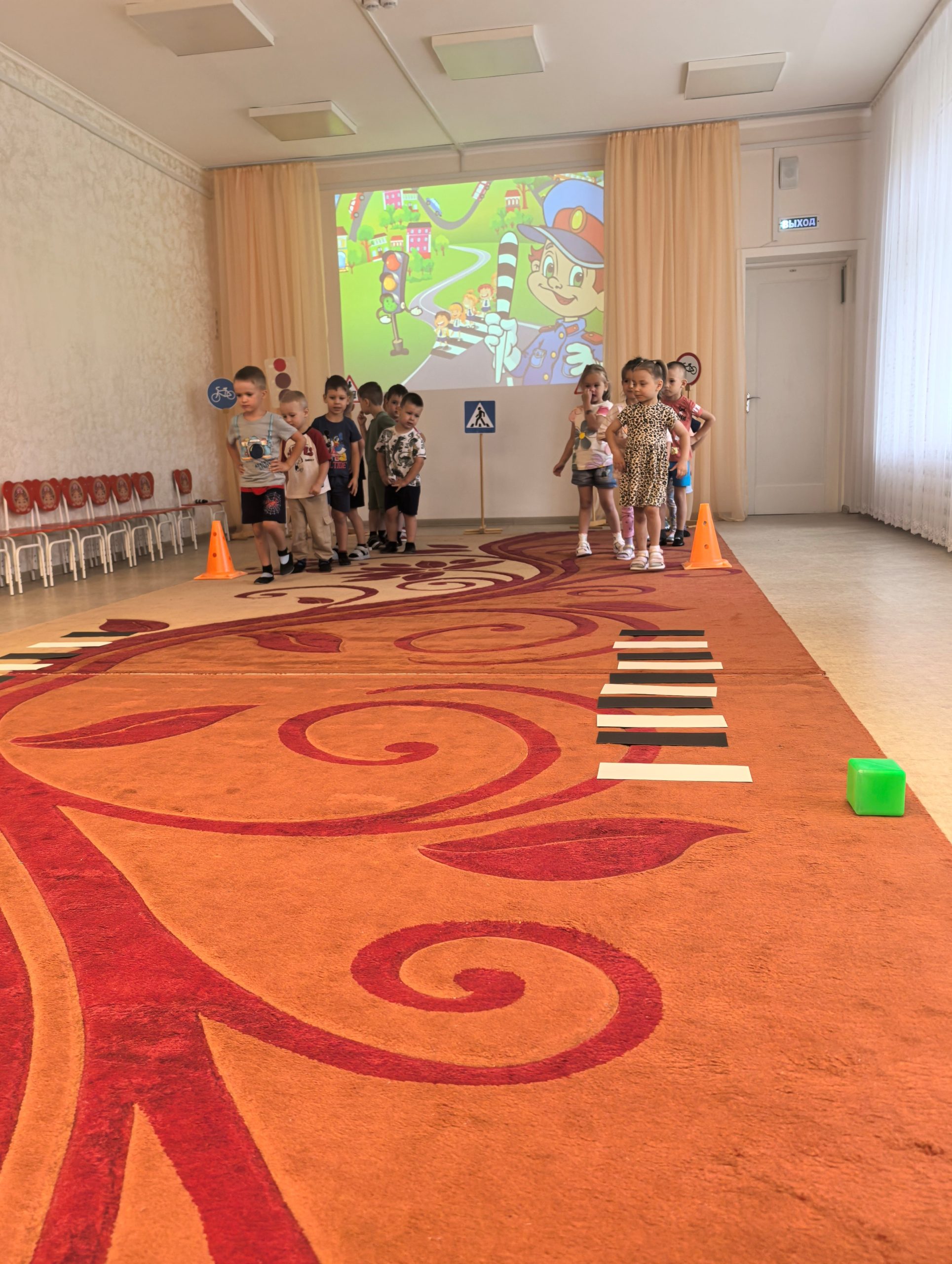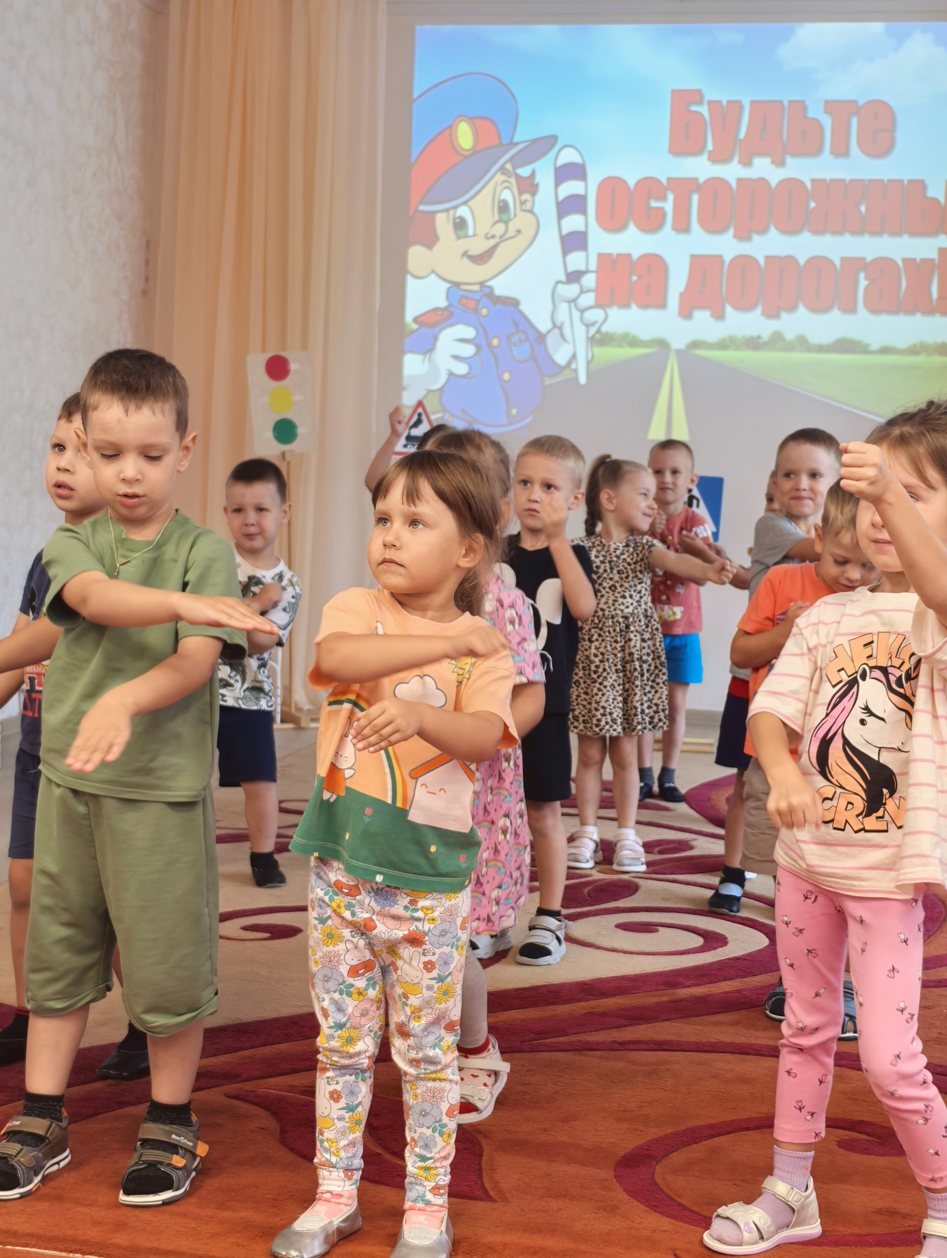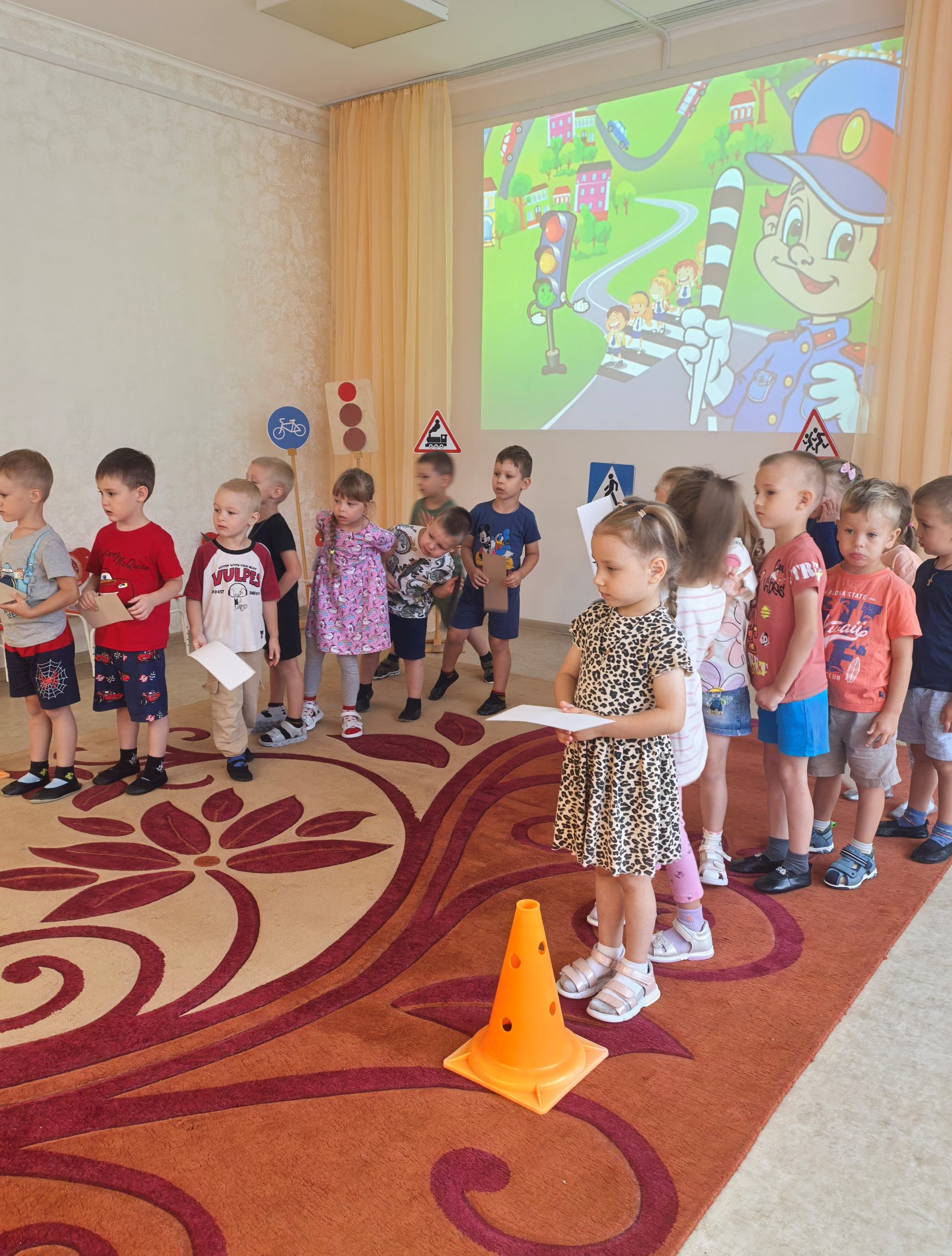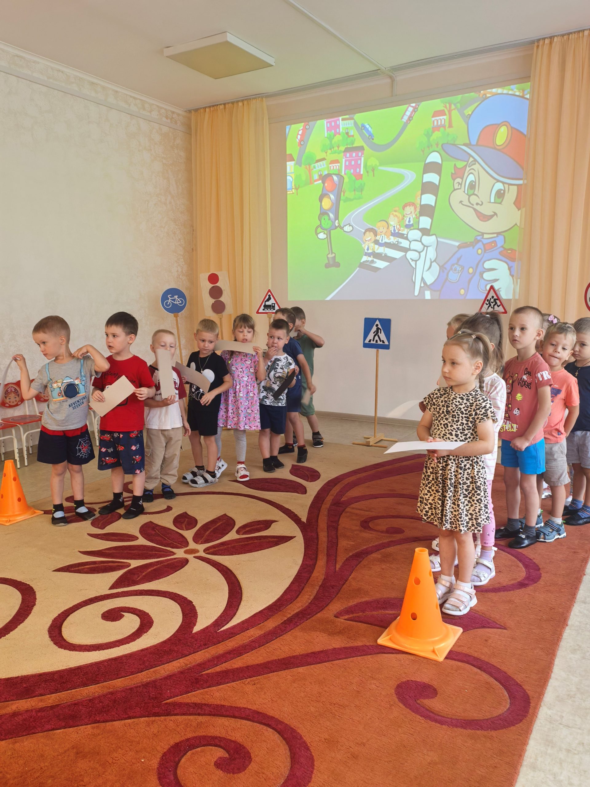 🎲 После познавательной беседы дети с огромным интересом разыгрывали ситуации на «пешеходном переходе», учились внимательно смотреть по сторонам, слушать взрослых и соблюдать все правила безопасности на дороге. 🟢🟡🔴 Итогом недели стало развлечение «Знай и выполняй правила дорожного движения». Ребята поиграли в игры, устроили эстафету, отгадывали загадки. Такие занятия помогают детям почувствовать себя уверенно в реальных жизненных ситуациях и формируют ответственное отношение к безопасности.