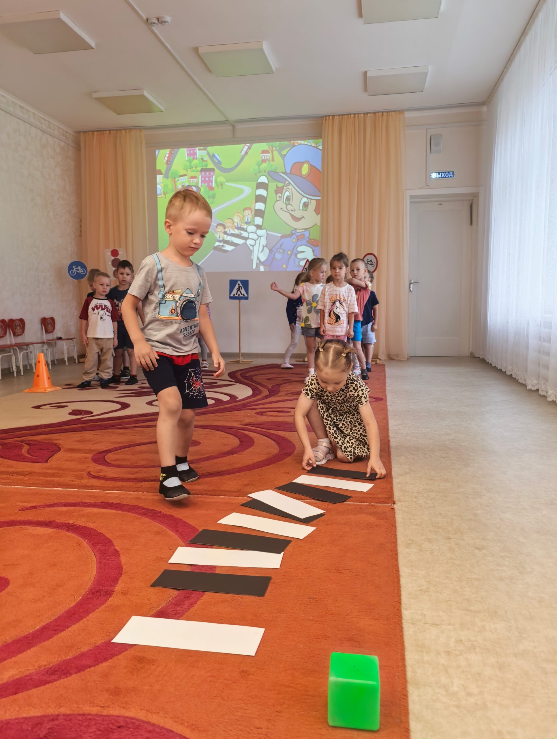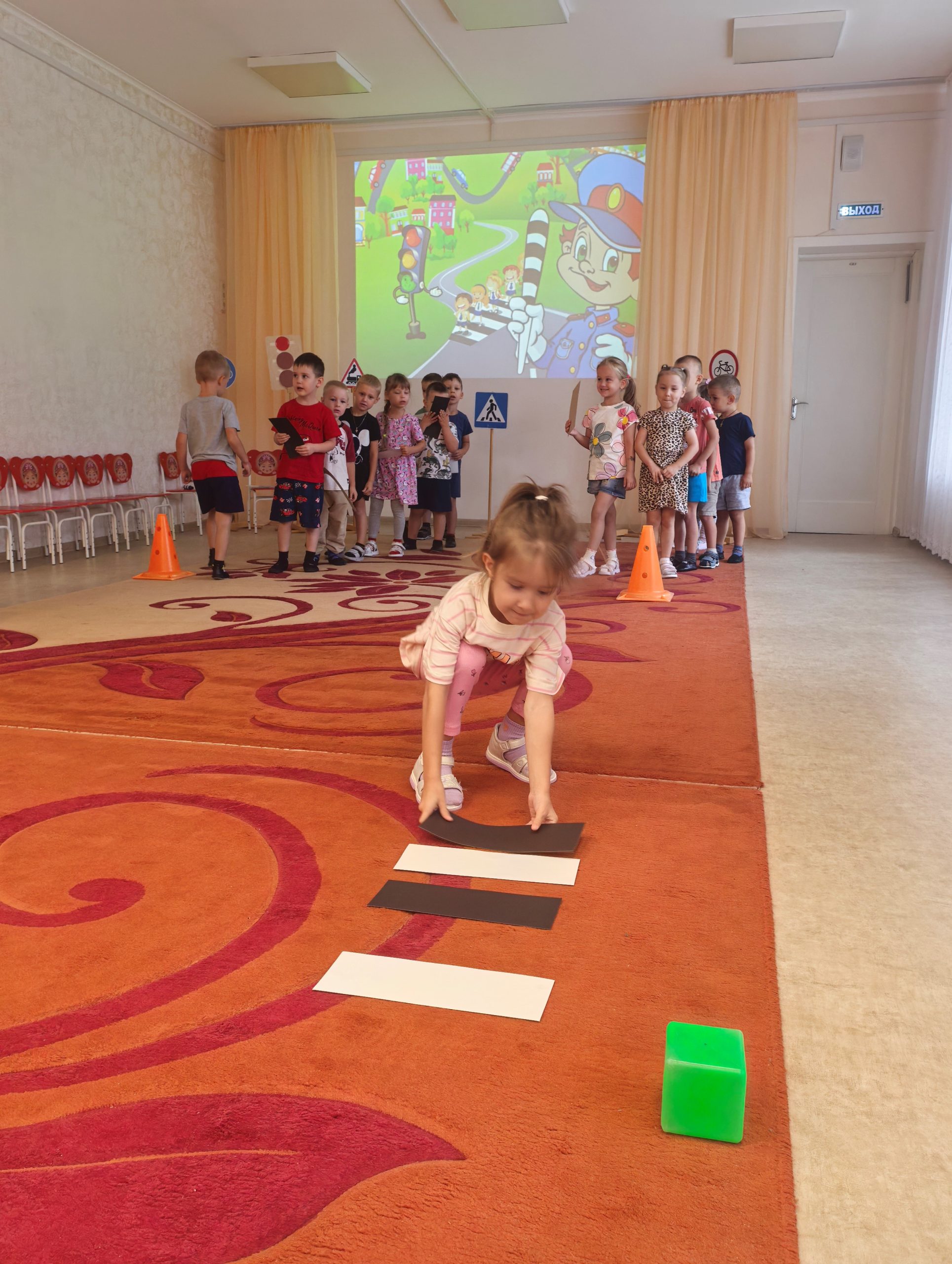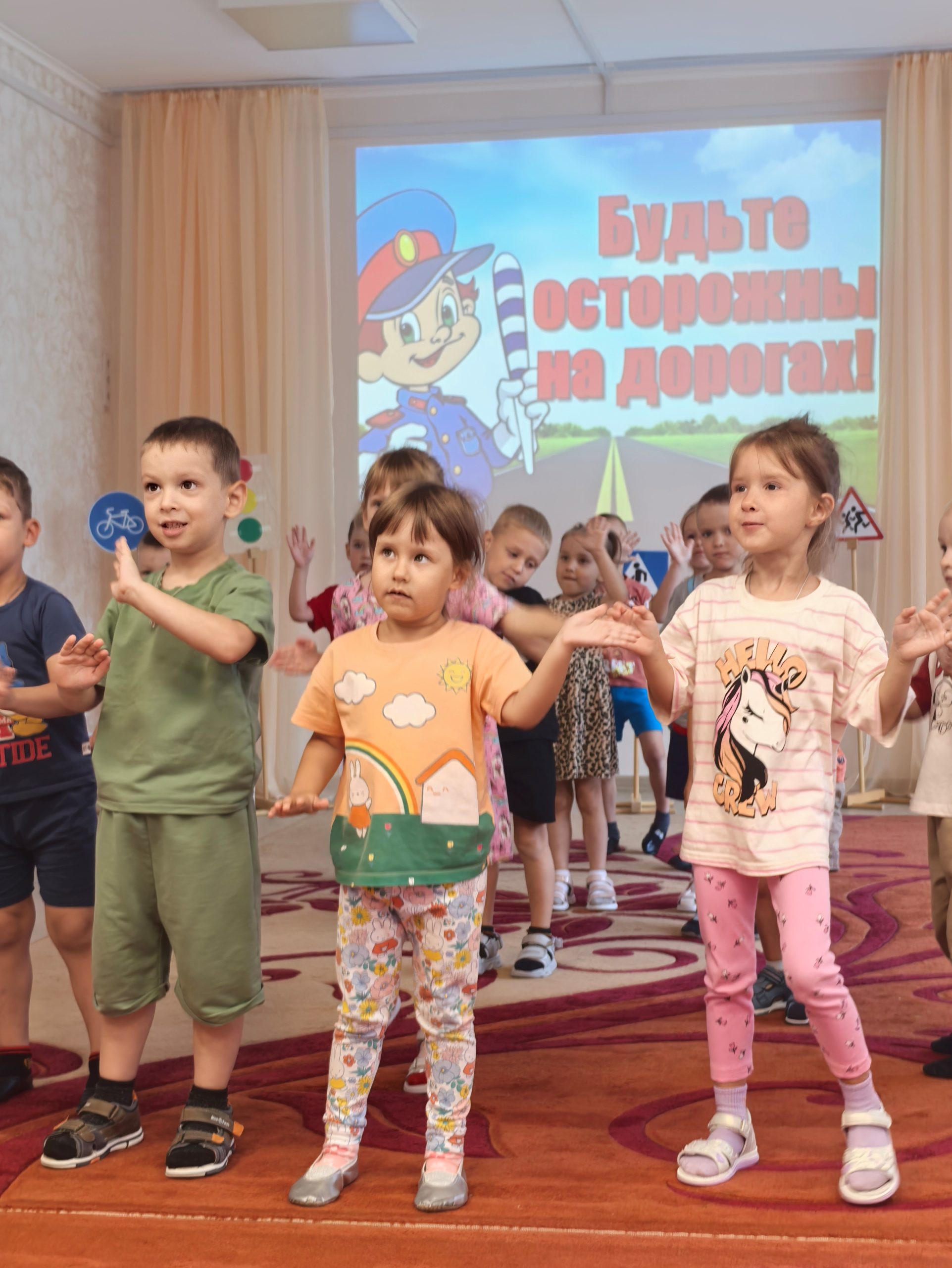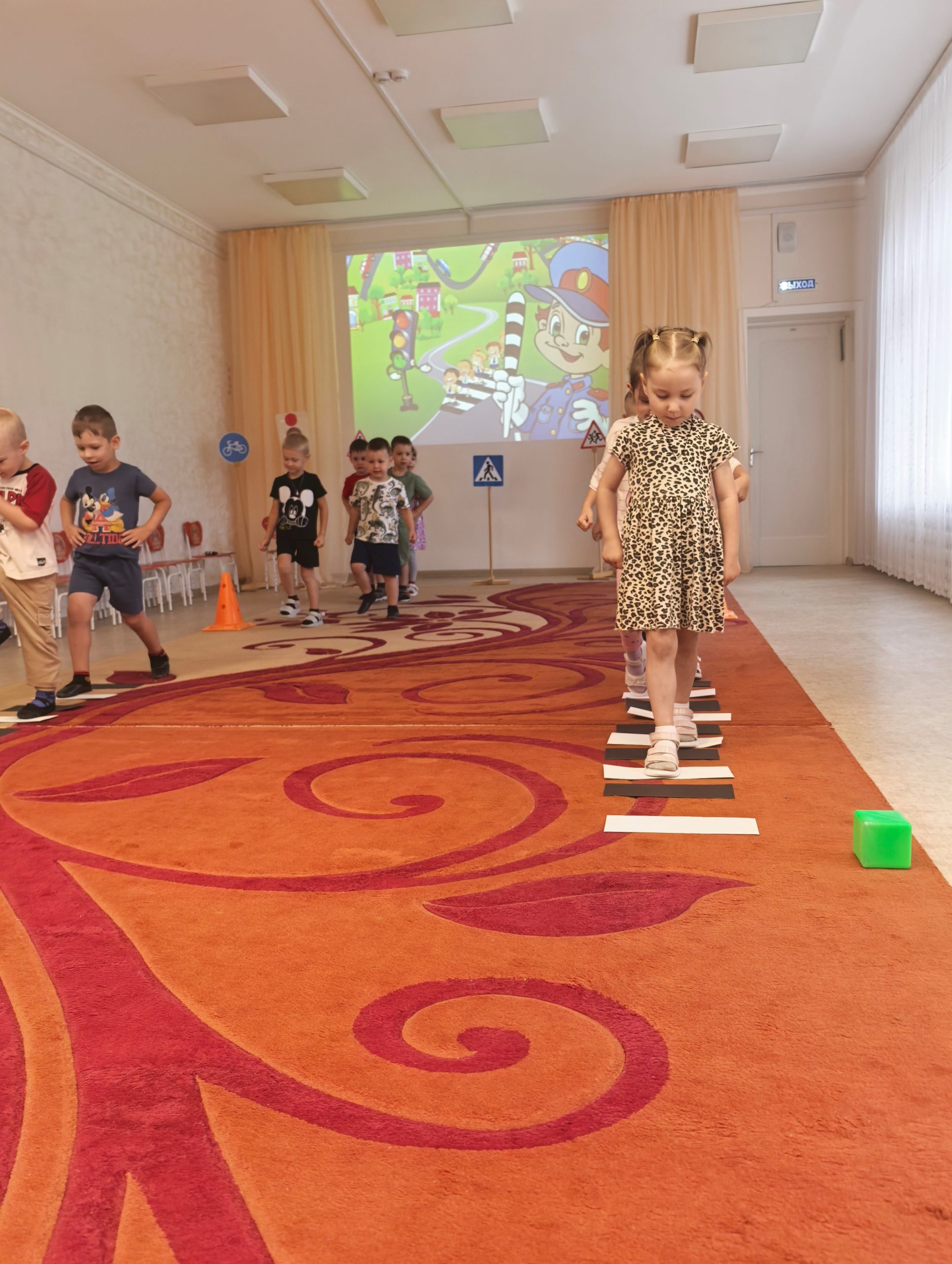 🎲 После познавательной беседы дети с огромным интересом разыгрывали ситуации на «пешеходном переходе», учились внимательно смотреть по сторонам, слушать взрослых и соблюдать все правила безопасности на дороге. 🟢🟡🔴 Итогом недели стало развлечение «Знай и выполняй правила дорожного движения». Ребята поиграли в игры, устроили эстафету, отгадывали загадки. Такие занятия помогают детям почувствовать себя уверенно в реальных жизненных ситуациях и формируют ответственное отношение к безопасности.