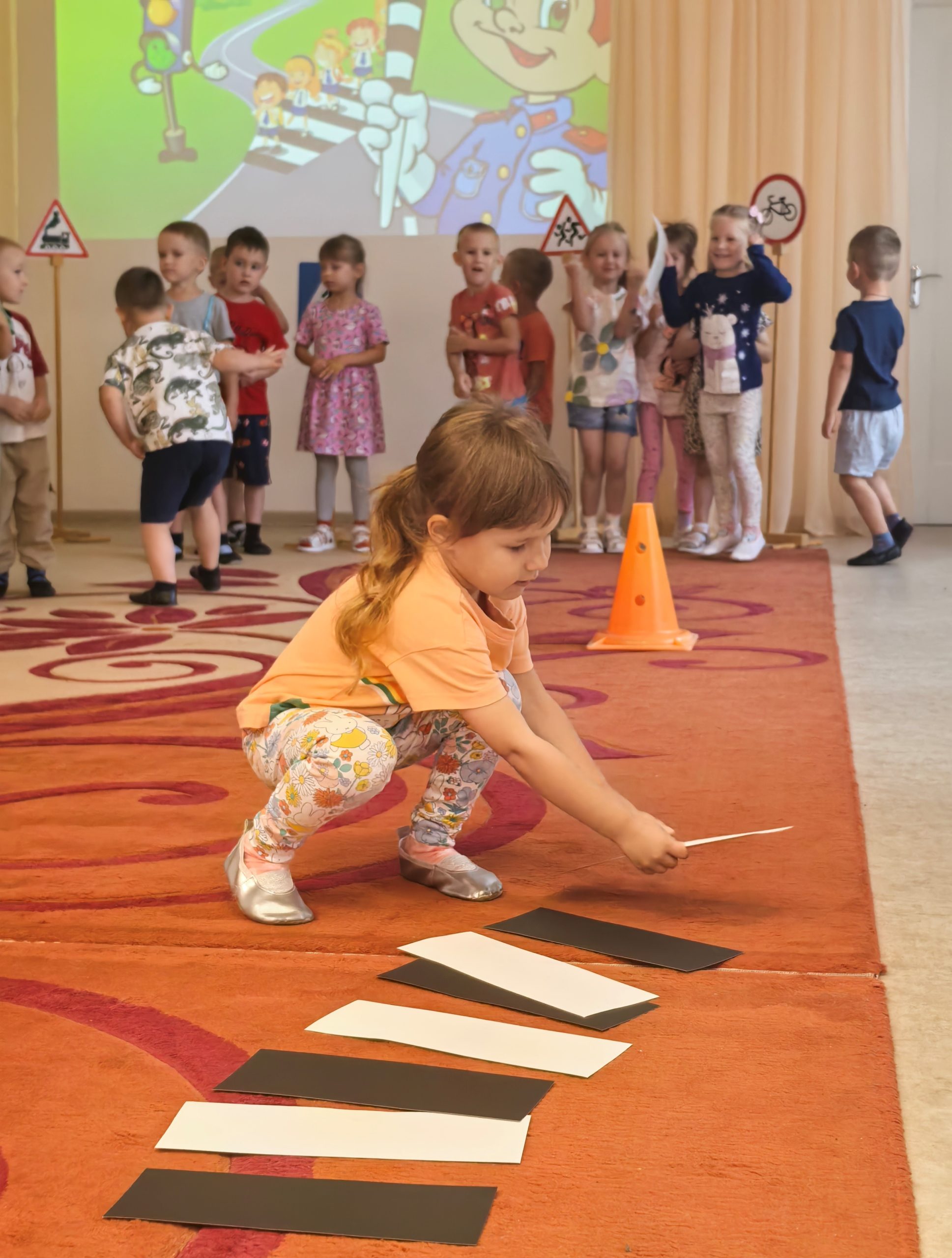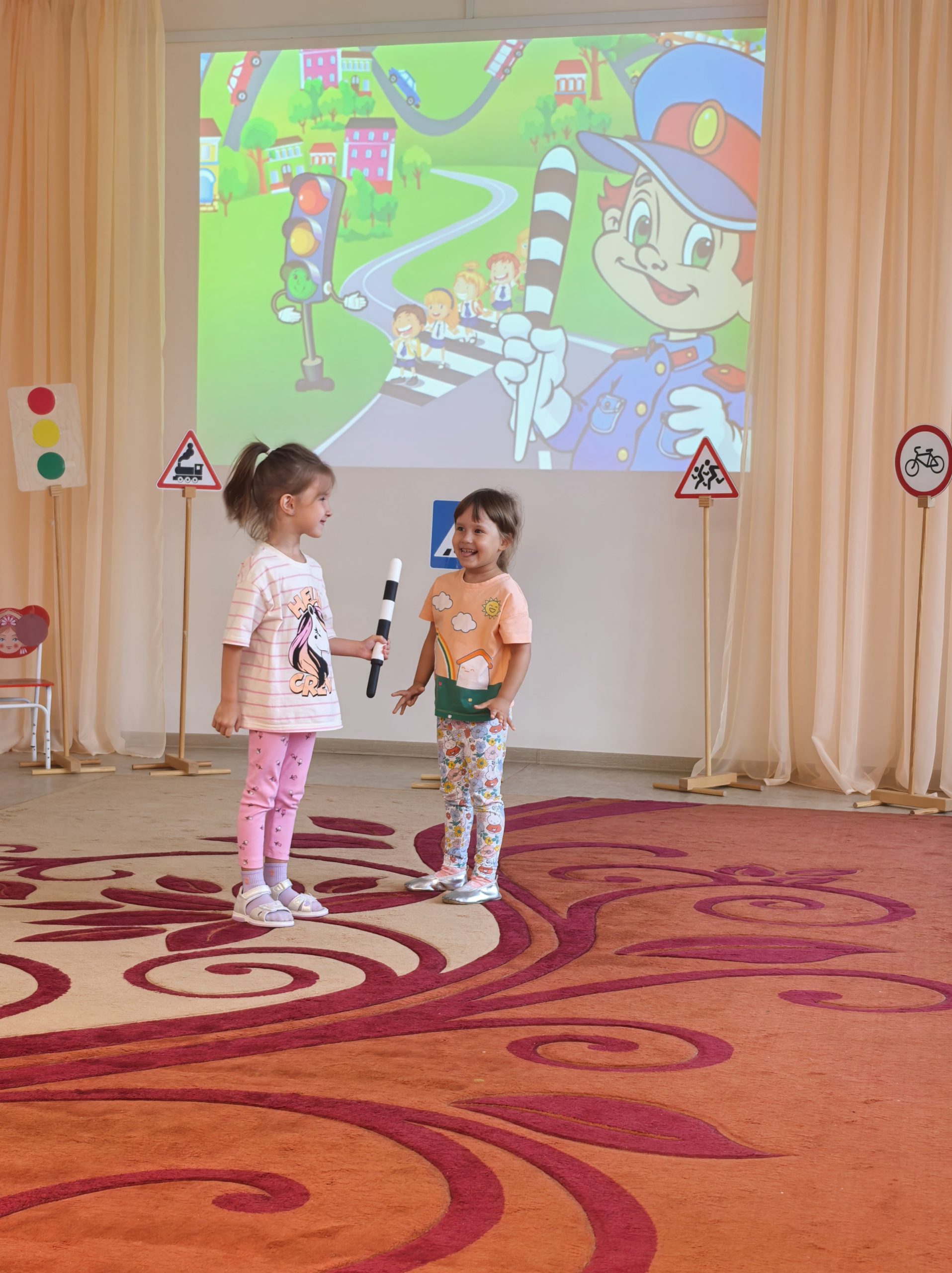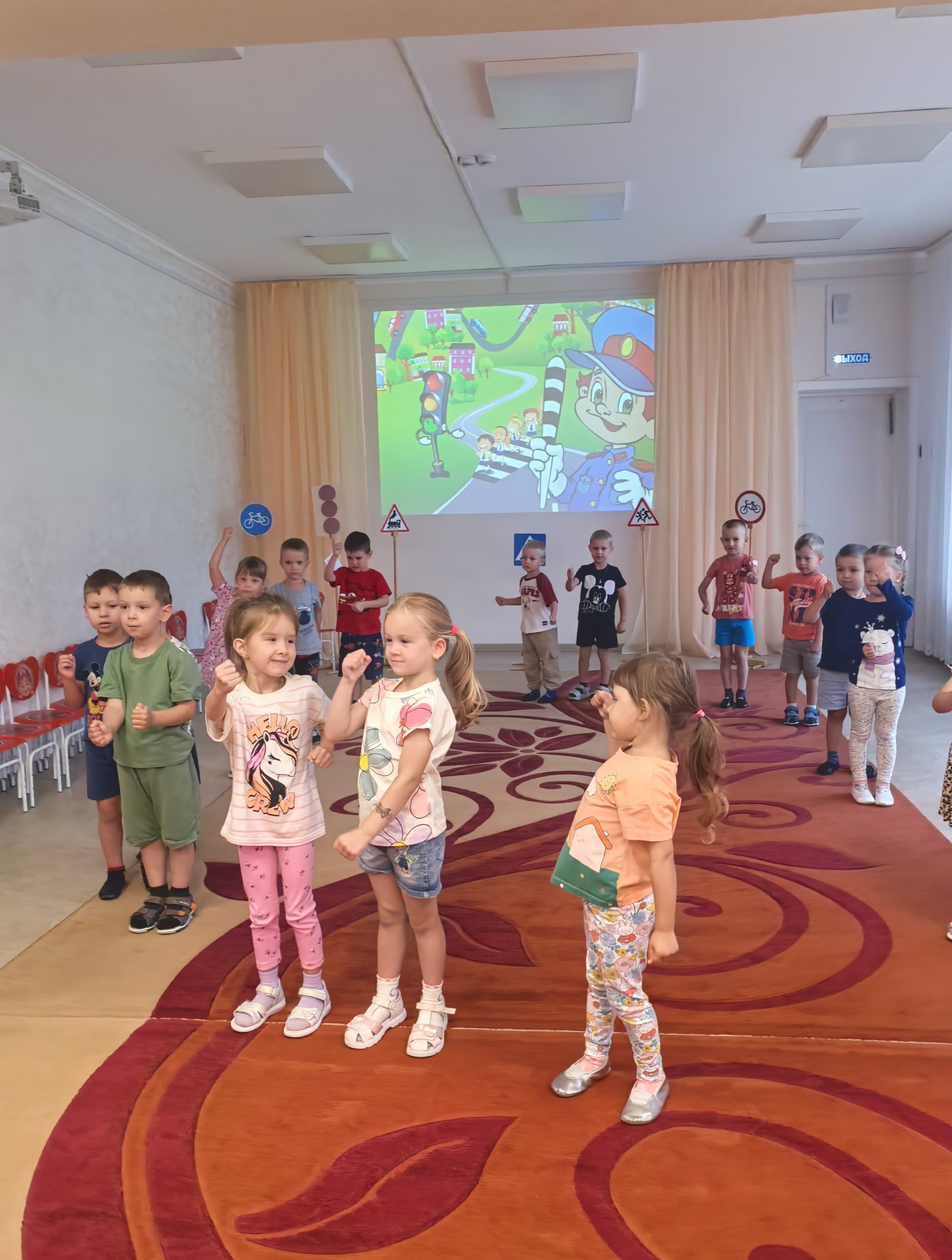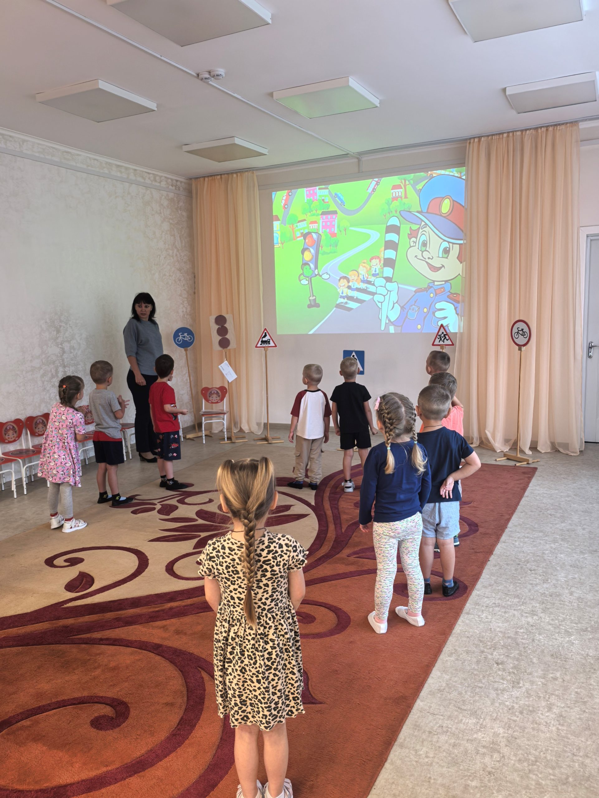🎲 После познавательной беседы дети с огромным интересом разыгрывали ситуации на «пешеходном переходе», учились внимательно смотреть по сторонам, слушать взрослых и соблюдать все правила безопасности на дороге. 🟢🟡🔴 Итогом недели стало развлечение «Знай и выполняй правила дорожного движения». Ребята поиграли в игры, устроили эстафету, отгадывали загадки. Такие занятия помогают детям почувствовать себя уверенно в реальных жизненных ситуациях и формируют ответственное отношение к безопасности.