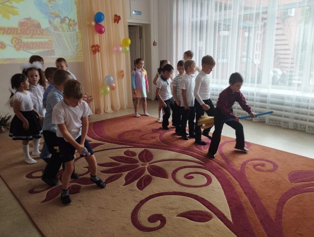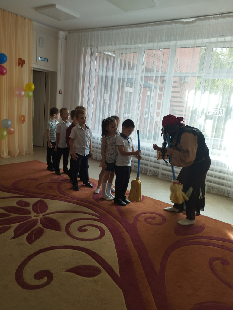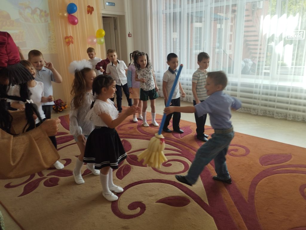 С Днём знаний воспитанников детского сада пришла поздравить Баба-Яга. Дети вместе с Бабой-Ягой участвовали в конкурсах, играх-соревнованиях, разгадывали загадки, пели песни, танцевали, много шутили и смеялись. В конце праздника каждый ребенок получил сладкий сюрприз. Вот так весело, интересно и празднично начался новый учебный год в нашем детском саду. Праздник 1 сентября всегда остаётся незабываемым, радостным и в тоже время волнующим. Хочется пожелать ребятам и педагогам, чтобы не только день 1 сентября был радостным, но и все дни, проведённые в детском саду!