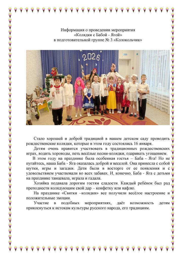 Информация о проведении мероприятия «Колядки с Бабой – Ягой» сайт02.02.2026 Группа Колокольчик, Наши новости ← Колядки