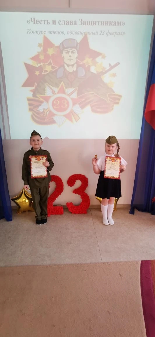 19 февраля в нашем детском саду прошёл конкурс чтецов “Честь и слава Защитникам” и наши ребята приняли в нем участие. Ребята тщательно готовились: надели гимнастерки, пилотки, выучили стихотворения. Юные чтецы проявили свое умение чувствовать красоту и выразительность языка произведения, эмоциональность исполнения, артистичность. За что и были награждены дипломами за 1 и 2 место. Поздравляем наших победителей и желаем им дальше побед!