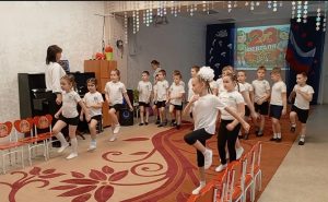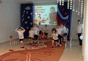 Ребята поделились на две команды “Голубые береты” и “Танкисты”. Каждый старался принести победу своей команде. А наши милые девочки поздравили мальчиков весёлыми частушками.