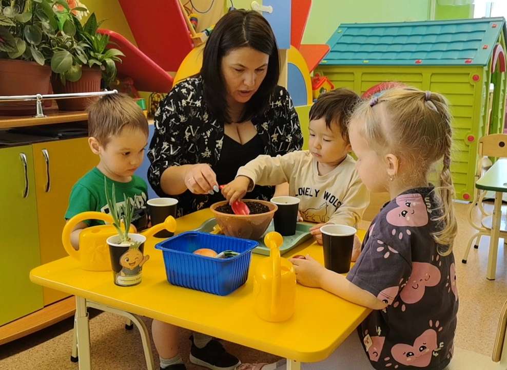 В нашей группе мы провели занятие по посадке лука — эксперимент, который развивает интерес к окружающему миру, расширяет словарный запас и даёт первый опыт выращивания растений.