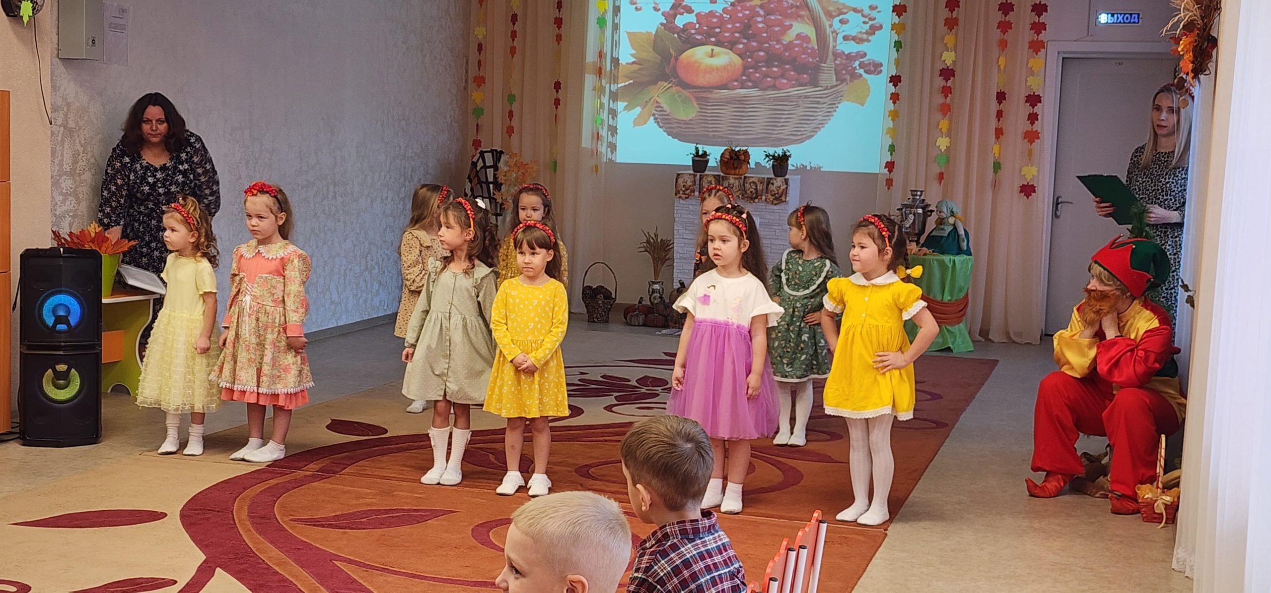Традиционно, в октябре, в нашей группе проходит осенний праздник. На дворе пасмурно и холодно, не хватает солнечного тепла, а у нас в музыкальном зале царила теплая, доброжелательная атмосфера. В гости к ребятам пришла осень-красавица, принесла в гостинцы яблоки. Дети с нетерпением ждали встречи с осенью. Вместе с Осенью воспитанники отправились в увлекательное путешествие. На празднике дети пели песни, исполняли танцы, играли в веселые игры, отгадывали осенние загадки, рассказывали стихи. А самым ярким и запоминающимся эпизодом стал сюрпризный момент – корзина с яблоками от осени для всех ребят! Праздник в детском саду – это всегда удивительные чудеса, волшебные краски, звонкий смех воспитанников, море улыбок и веселья. Вот почему праздник осени в детском саду является одним из самых любимых у нашей детворы. Мероприятие было веселым, ярким, увлекательным. Воспитанники получили много позитивных эмоций.