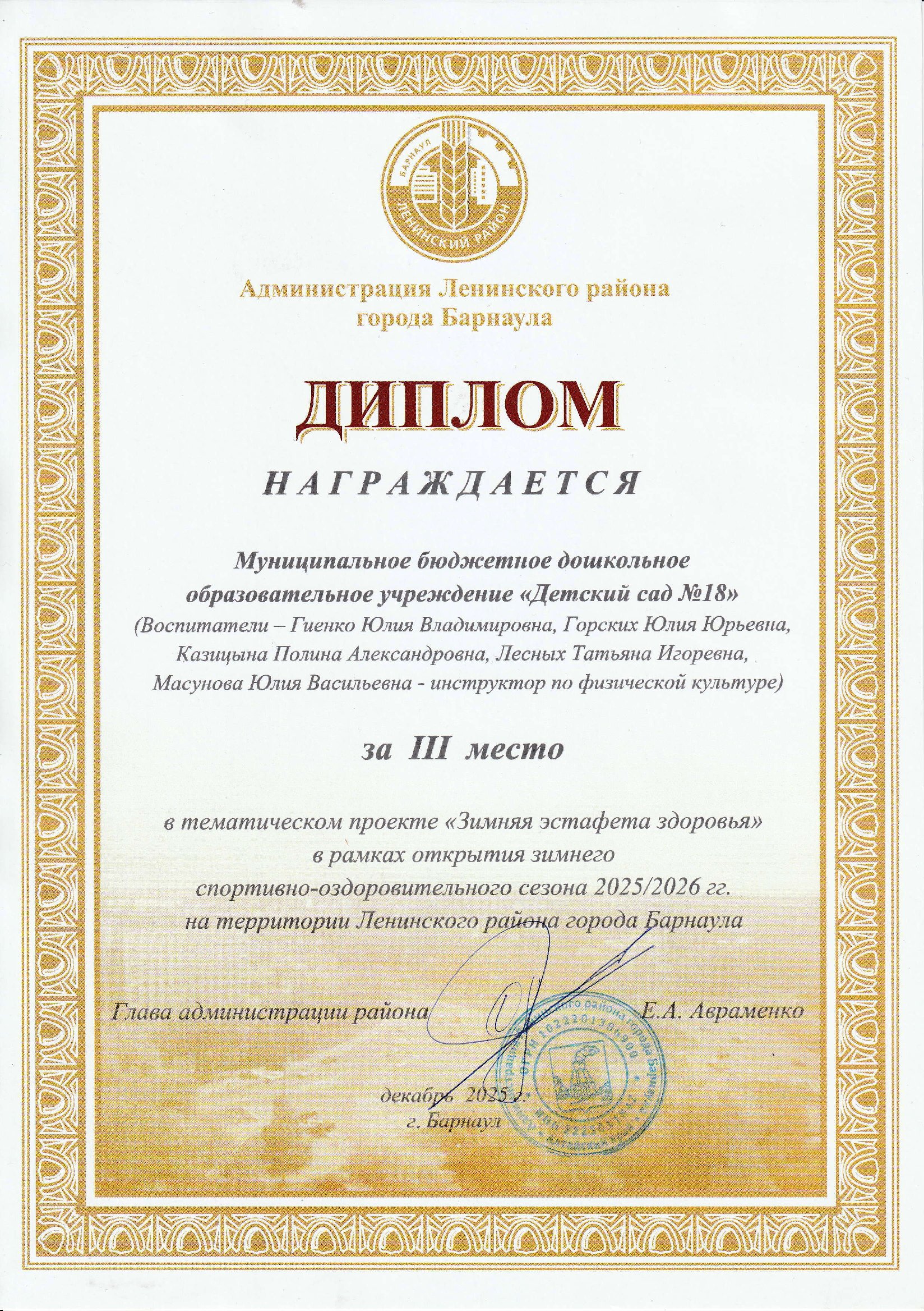 Муниципальное бюджетное дошкольное образовательное учреждение «Детский сад №18»