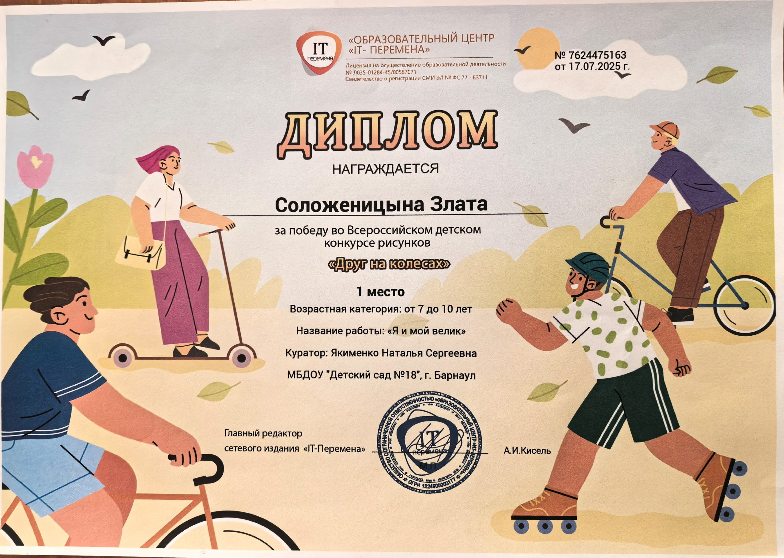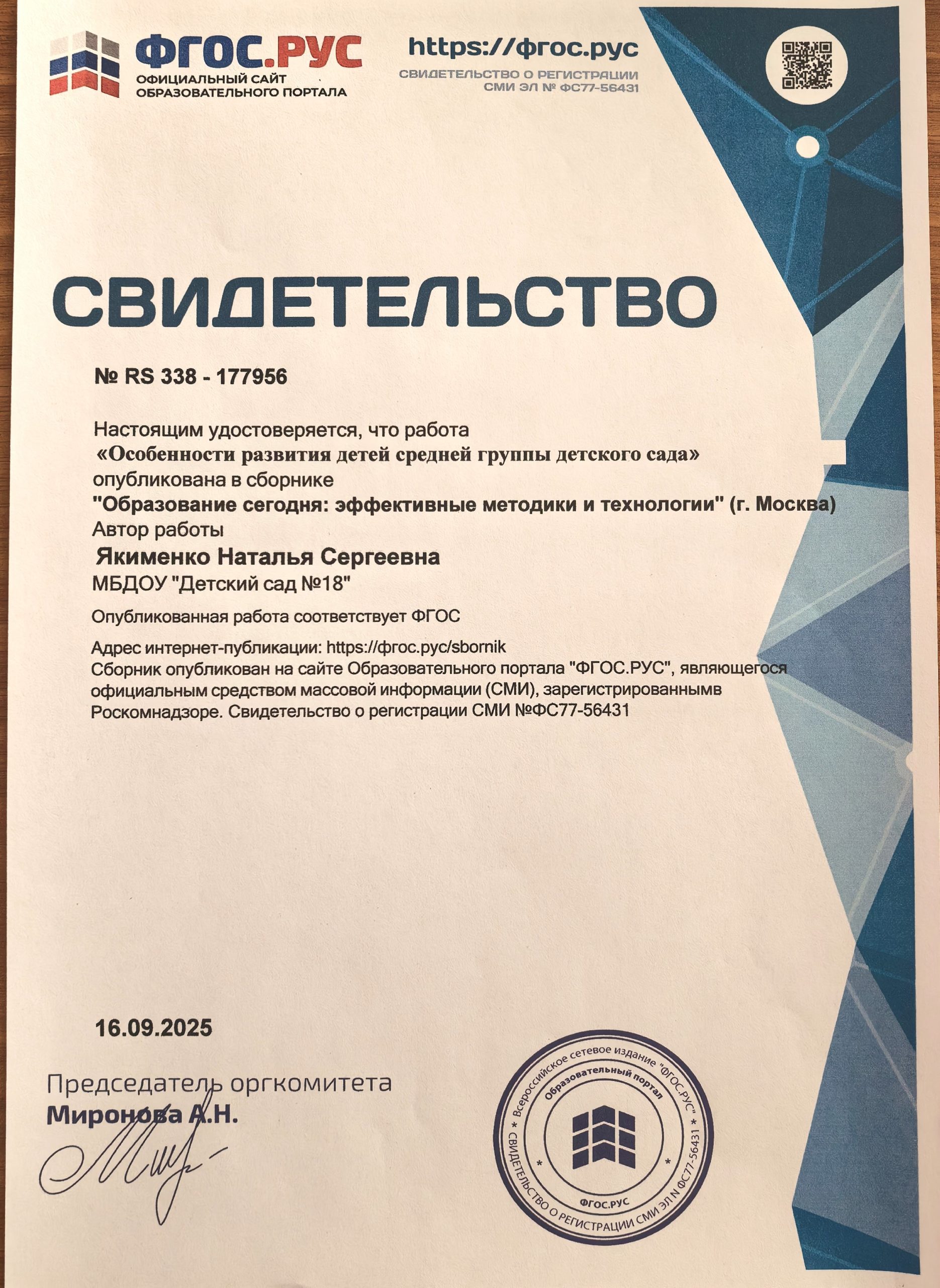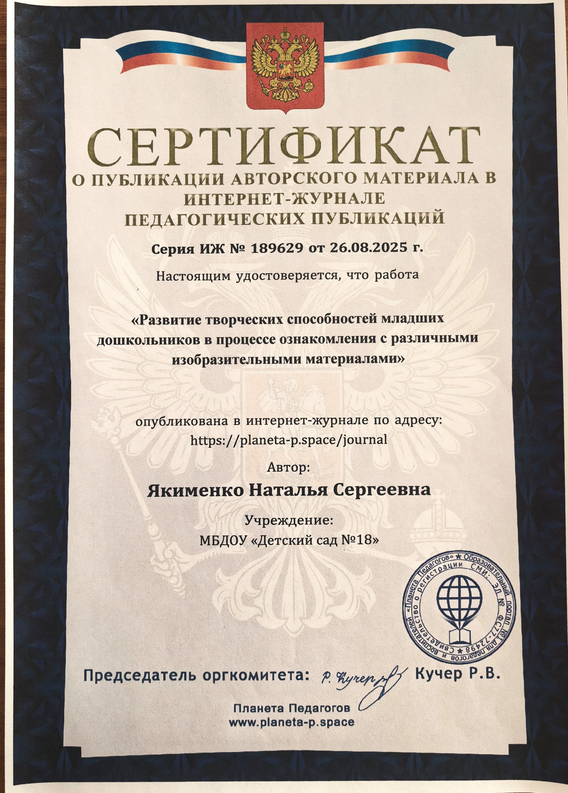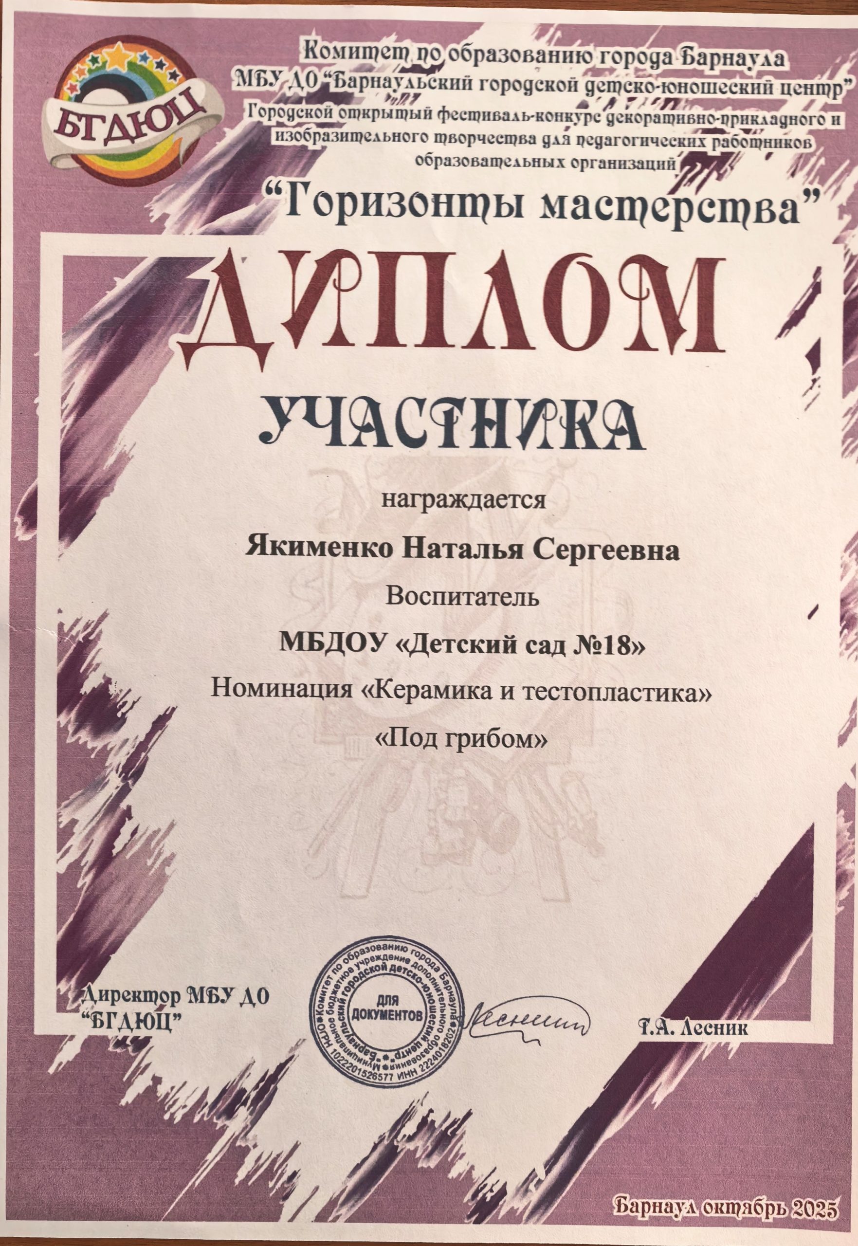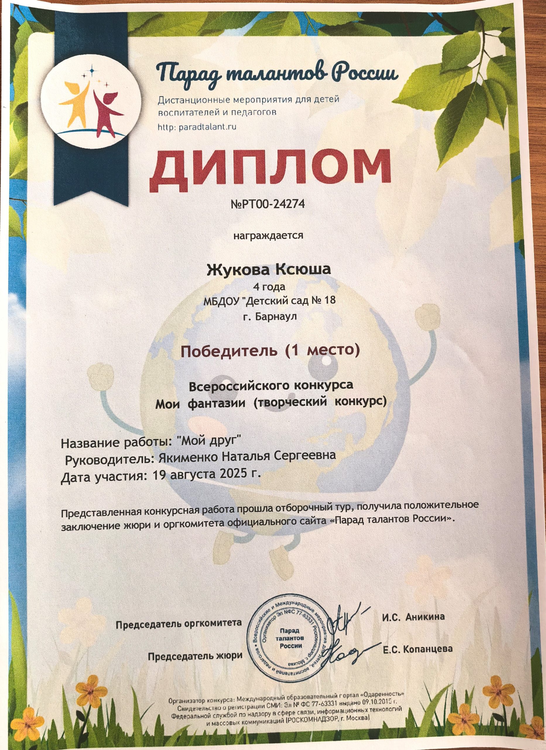 Курсы повышения квалификации: КГБУ ДПО “Алтайский институт развития образования имени Адриана Митрофановича Топорова” по теме «Инклюзивное образование детьми с ограниченными возможностями здоровья в дошкольной образовательной практике», 2020г